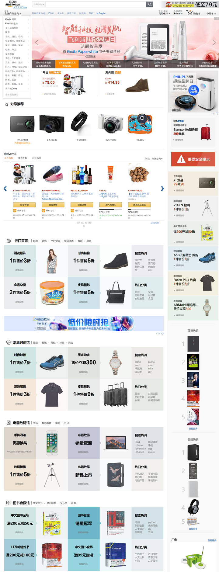 亚马逊中国(z.cn)坚持“以客户为中心”的理念,秉承“天天低价,正品行货”信念,销售图书、电脑、数码家电、母婴百货、服饰箱包等上千万种产品。亚马逊中国提供专业服务:正品行货天天低价,机打发票全国联保。货到付款,30天内可退换货。亚马逊为中国消费者提供便利、快捷的网购体验。