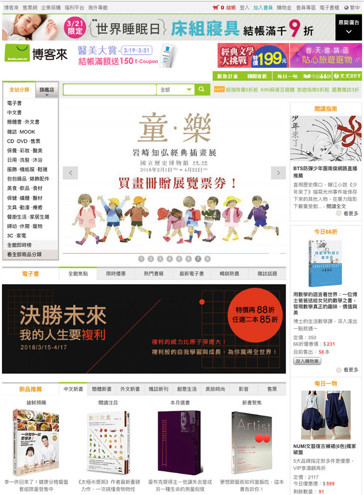 博客来提供上百万书籍、百货、影音、设计、文具、美食、有机、美妆、服饰。网路书店有齐全的繁简体外文书籍杂志,购物网多样性百货设计商品满足您购物需求。取货安全方便,中午前订7-11隔日取。
