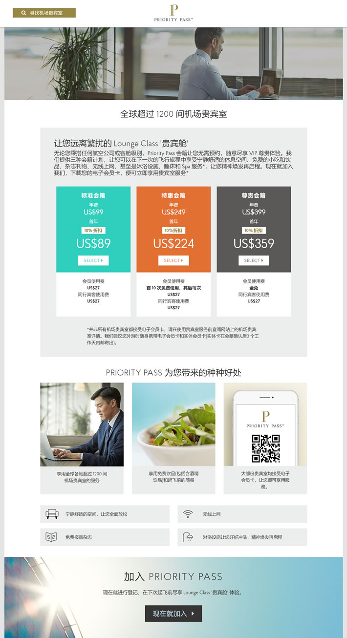 Priority Pass机场贵宾室会籍计划(中国):https://www.prioritypass.com/zh-cn/