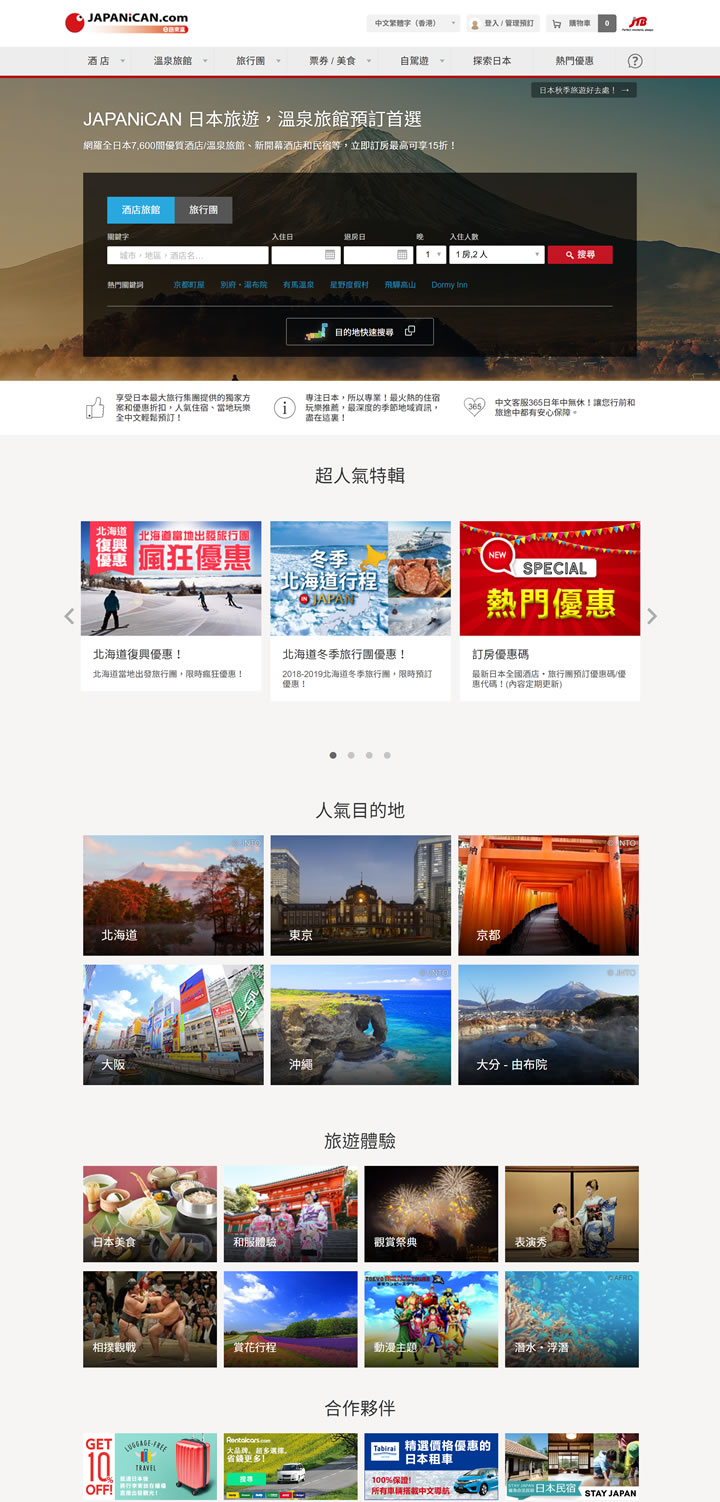 JAPANiCAN网罗全日本7600间优质酒店/温泉旅馆、新开幕酒店和民宿等,立即订房最高可享15折!是具口碑、可信赖的专业日本旅游订房网!