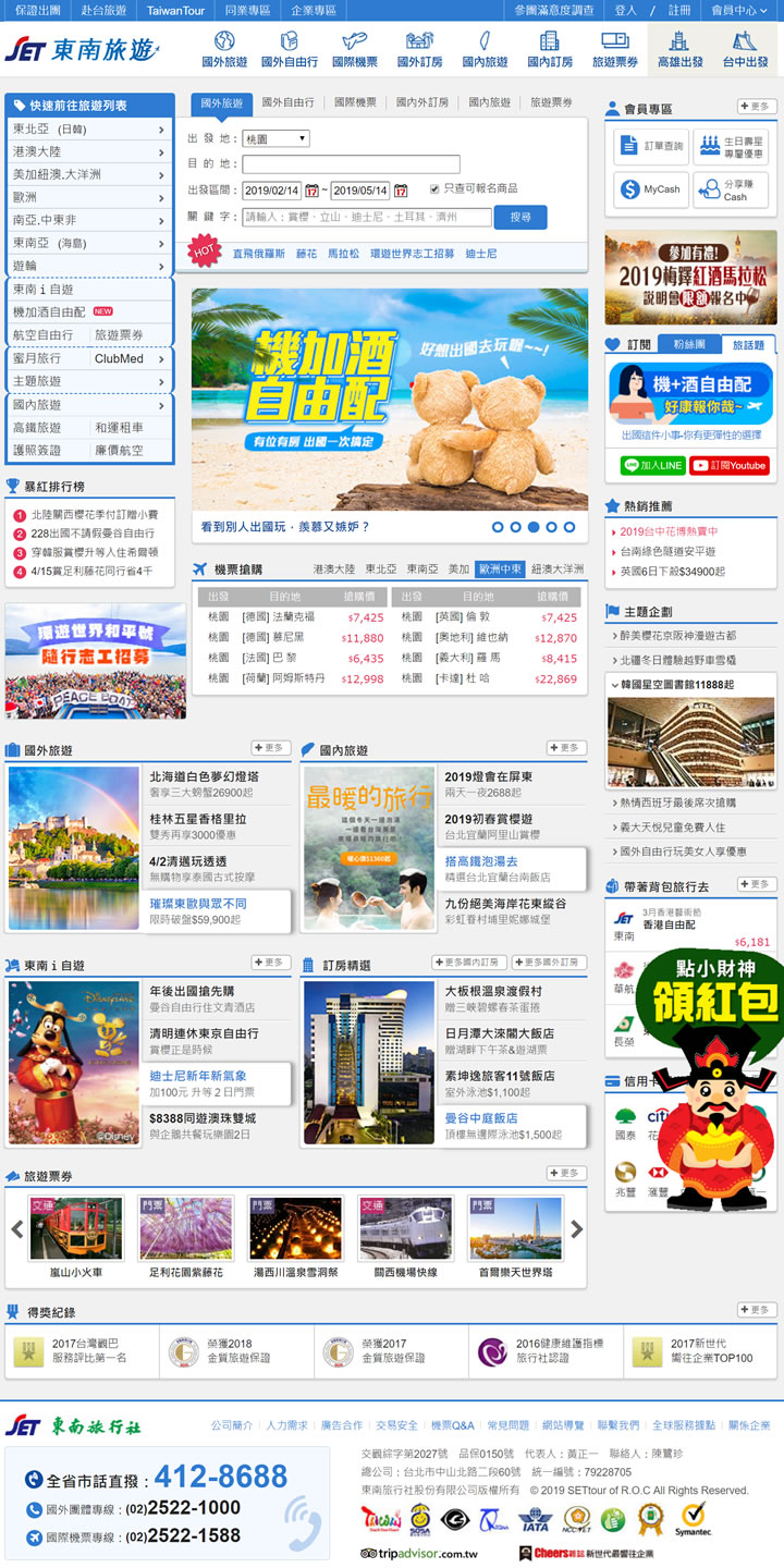 东南旅游网提供专业旅行社旅游规划,国内外团体旅游、机票、饭店订房、自由行、高铁旅游、和运租车假期、旅游票券、护照签证等全面旅行社服务,不论您是全家亲子旅游、蜜月旅行、商务出差、企业员工旅游,东南旅游提供您最专业的旅游谘询与优惠行程, 带您轻松玩遍全世界!