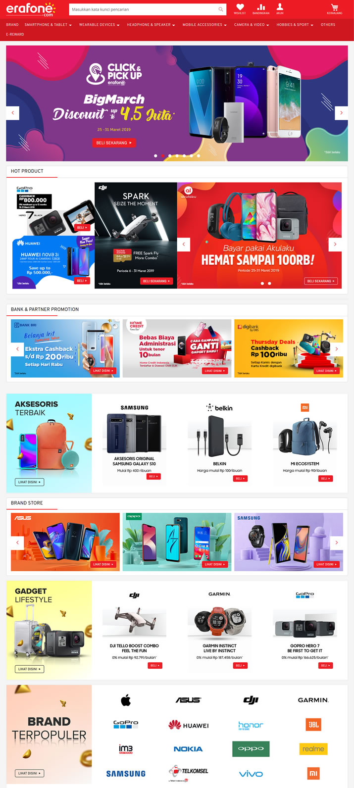 Erafone.com是印度尼西亚的一家手机和平板电脑零售商,提供三星、苹果、诺基亚、微软、华硕、小米、Smartfren、联想、Oppo、LG、黑莓、索尼、摩托罗拉、宏碁等知名品牌的官方保修产品。Erafone.com还销售各种运营商产品和小工具配件。
