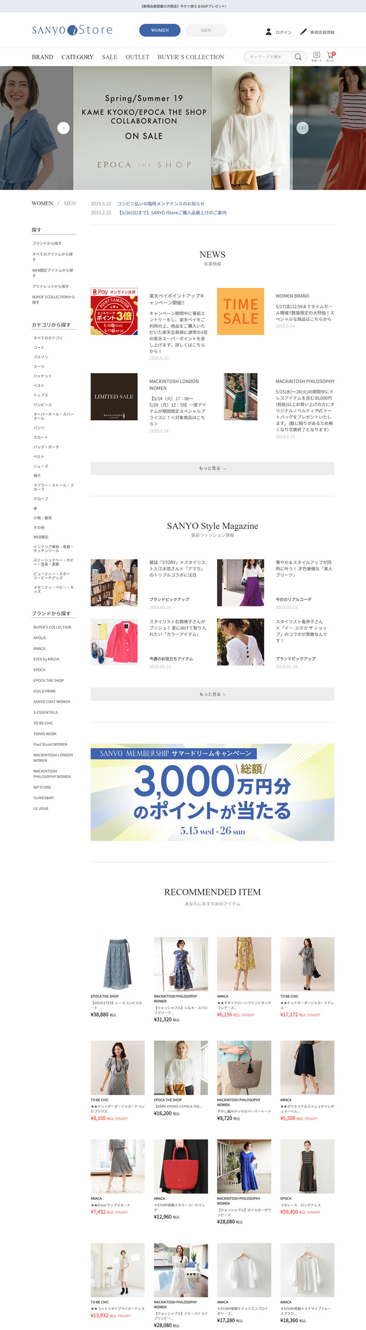 Sanyo iStore 三陽商会是日本国东京都新宿区一家服装的设计制造商,旗下有48个品牌,其商品主要通过百货公司进行销售。该公司的理念是“通过时尚,创造一个美好和丰富的文化生活并对社会的发展贡献”。陆续推出了“EPOCA”、“FRAGILE”等日本本土的时尚品牌。