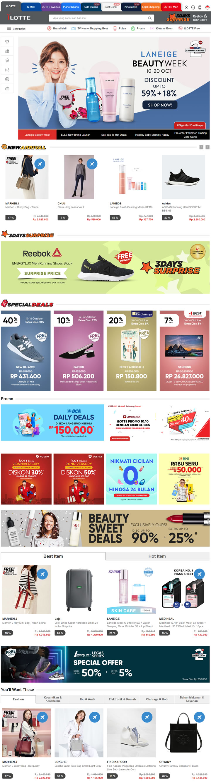 iLOTTE.com是一个值得信赖的在线购物网站,提供琳琅满目的产品系列,包括美容和保健产品、时尚、移动设备、智能手机、新鲜食品、食品配料、汽车、家具、家庭需求等等。iLOTTE凭借印度尼西亚第一个在线购物中心的概念,始终展示来自著名品牌产品的特别且有吸引力的折扣促销。