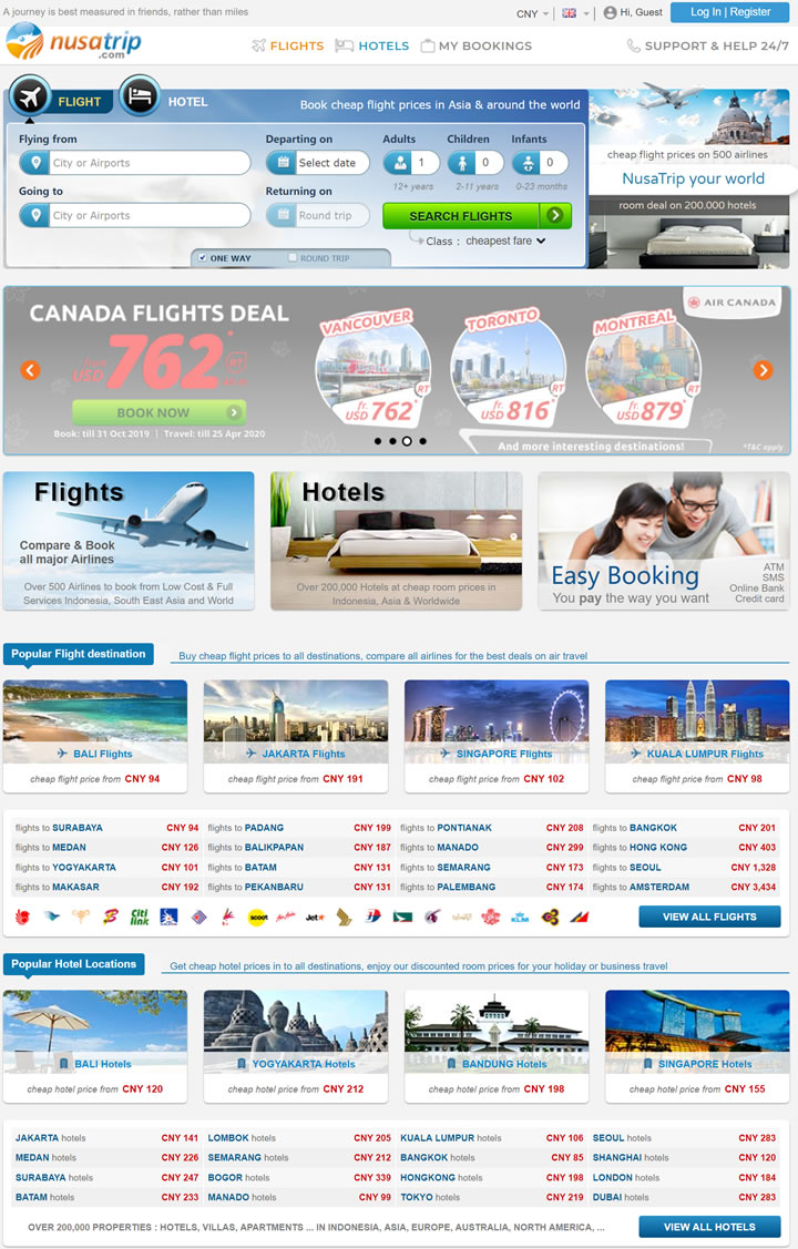 NusaTrip.com是印尼第一个最大的在线旅游门户网站,成立于2013年。廉价酒店和航班预订,国内和国际全球20万家酒店。比较500家航空公司,24/7快速预订!