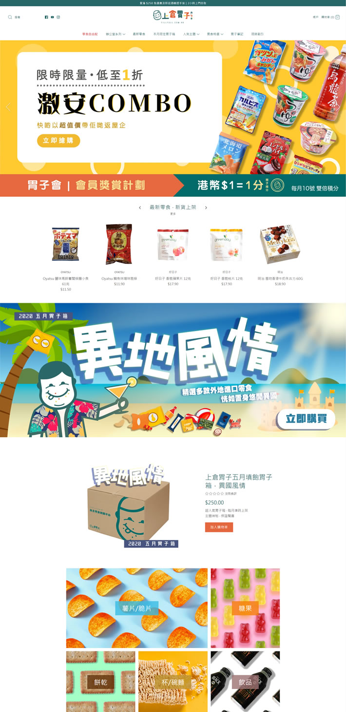 香港零食网购,推介多款最新最平零食,由日本韩国欧美直送,有齐薯片、杯麵、小食、糖果同饮品!每月不同主题零食箱及优惠,欢迎零食批发!最快2小时取货,满$250免运费!