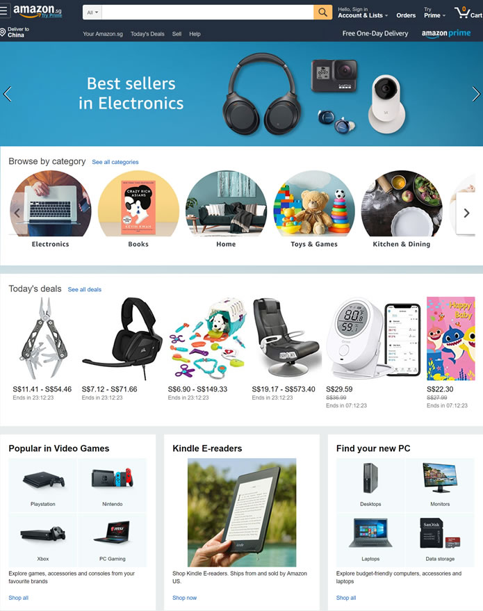亚马逊新加坡官方网站,在线购买电子产品、计算机、书籍、玩具、DVD、婴儿、杂货、美容、厨房、家庭、个人护理等产品。