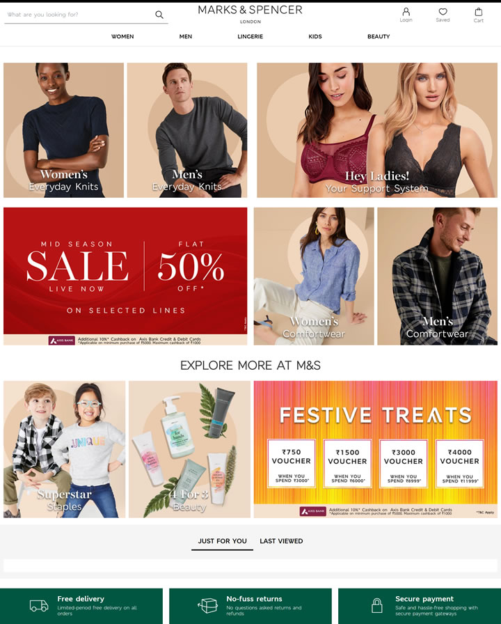 马莎百货(Marks&Spencer)是整个家庭的主要英国服装、鞋子和配饰品牌。该公司由迈克尔·马克思(Michael Marx)和托马斯·斯宾塞(Thomas Spencer)于1884年在英国成立,目前拥有1300多家商店,其中英国有874家,在其余59个国家中有489家。每个季节,一支由最优秀的英国设计师、技术人员和产品开发专家组成的团队致力于寻找新趋势和时尚解决方案,以年复一年地创造出新系列,以每件产品的美观和恒定的质量标准满足客户的需求。这项工作的结果是,马莎百货(Marks&Spencer)品牌成功成为英国风格的代名词,生产了采用新技术开发的最佳材料系列,并体现在女性服装、内衣以及男女儿童服装中。