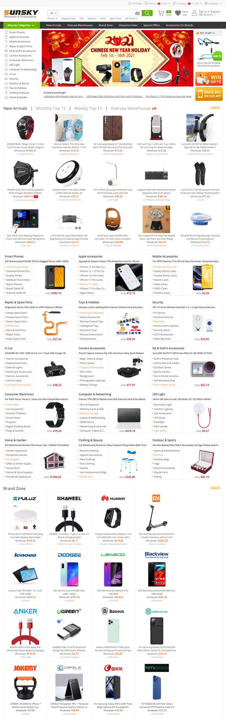 Sunsky是中国领先的批发商,我们专注于电子产品,专注于手机及配件、数码相机配件、汽车配件和LED灯等。我们公司的总部位于中国深圳。我们每天为200多个国家/地区的客户提供和交付超过30000个订单,我们的业务在不断发展,它将帮助您赚钱。
