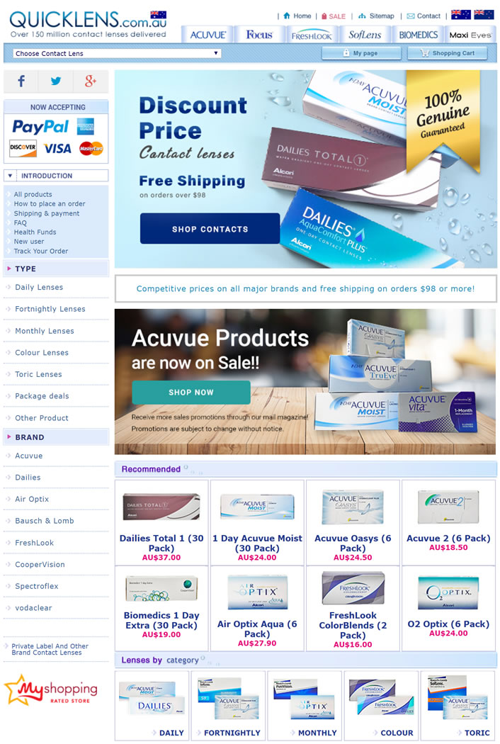 从QUICKLENS网站上以低价购买隐形眼镜。Acuvue Oasys、Focus Daillies、Air Optix、Biofinity和许多其他隐形眼镜的价格出奇地低。所有订单满$98免运费。