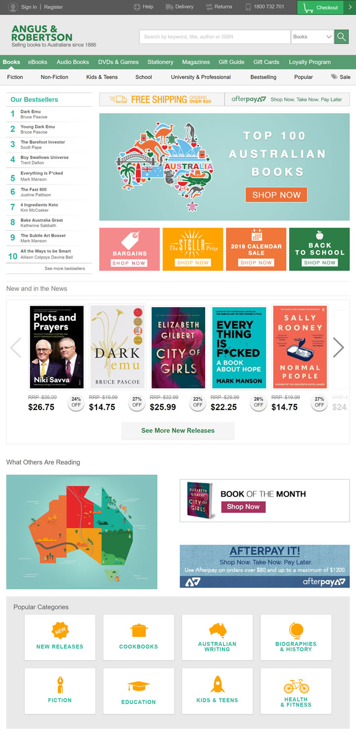 Angus & Robertson不仅出售书籍,还出售电子书、音乐、电影、日历、文具、礼品等。