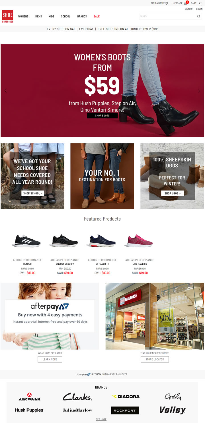 Shoe Warehouse以仓库价格为全家提供澳大利亚最全面的优质舒适款式。