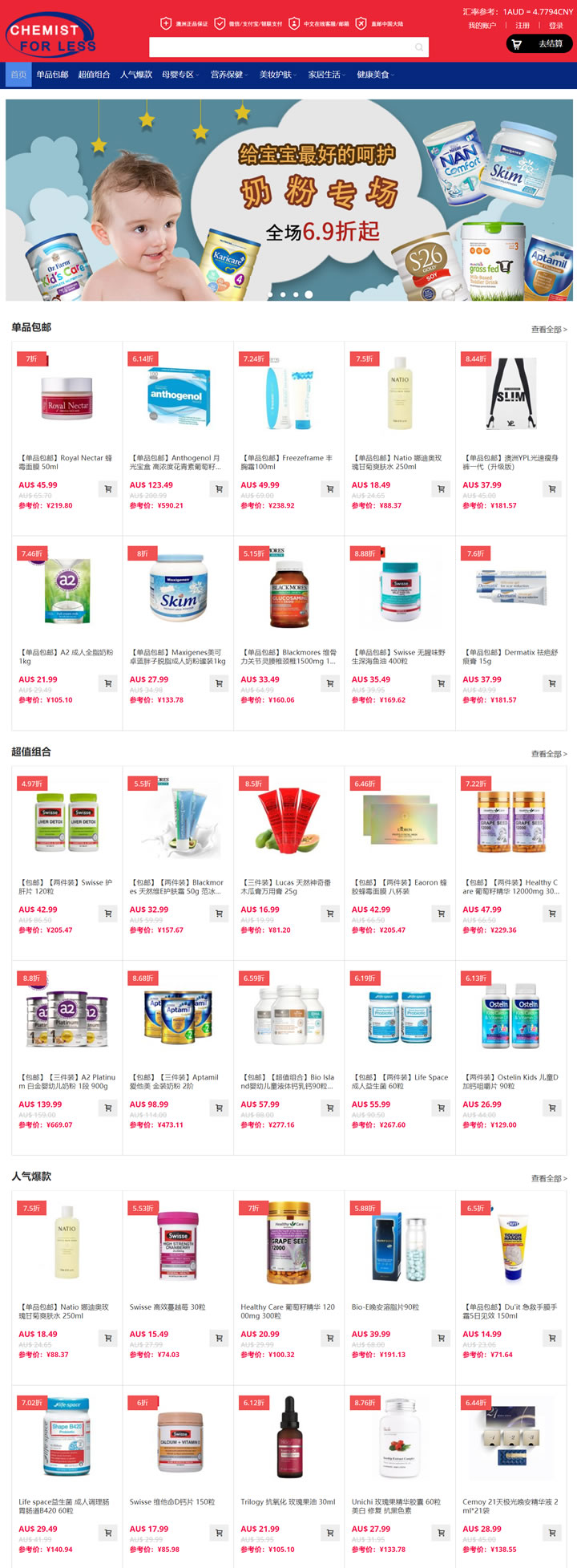 ChemistforLess(简称澳洲cfl)是一家位于澳大利亚的线上商城,所有产品均来自澳洲本土品牌厂商。拥有的产品涉及领域广泛,主打保健品,母婴用品等,直邮到全球超过上百个国家和地区。网站大多产品在澳洲统一零售价的基础上,最高拥有50%的折扣,物流快速安全,售后售前服务体系完善,全方位为海淘消费者保驾护航!