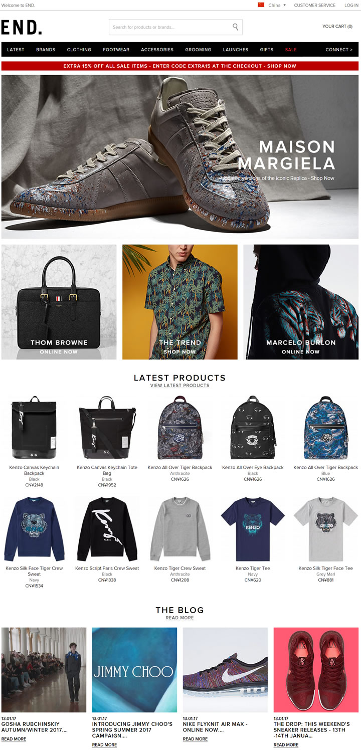 作为一家英淘站,服装鞋帽涵盖面都很全,线下也有店铺,但目前只在英国设立。值得一提的是他们家的鞋子种类很多,尤其是像Nike、adidas这些国内没上或迟于国外上的款,就连很难买到的联名系列,在END.Clothing上都能找到,但偏向休闲,实战鞋较少,价格其实并不比美国的海淘站便宜,但SALE区还是能碰上好货的,并且更新速度也很快,这点很良心。还有一大的优势,也和现在大多数的英淘站一样,支持直邮中国,方便快捷。注册网站时,最好顺便填上中国地址,这样网站会默认显示欧洲以外的用户免除消费税的价格,大概相当于打了8.2折。