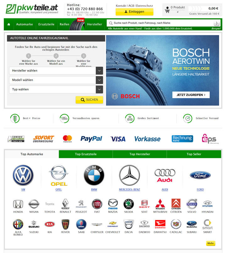 奥地利汽车配件店,在线购买汽车零部件和配件 ,包括奥迪、宝马、奔驰等汽车品牌的零件、排气管、减震器、制动盘、前大灯、保险杠等。