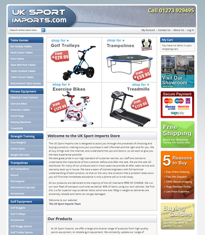 英国体育器材和健身器材进口商。进口包括游泳池、跑步机、哑铃、蹦床、台球桌、帐篷及更多。