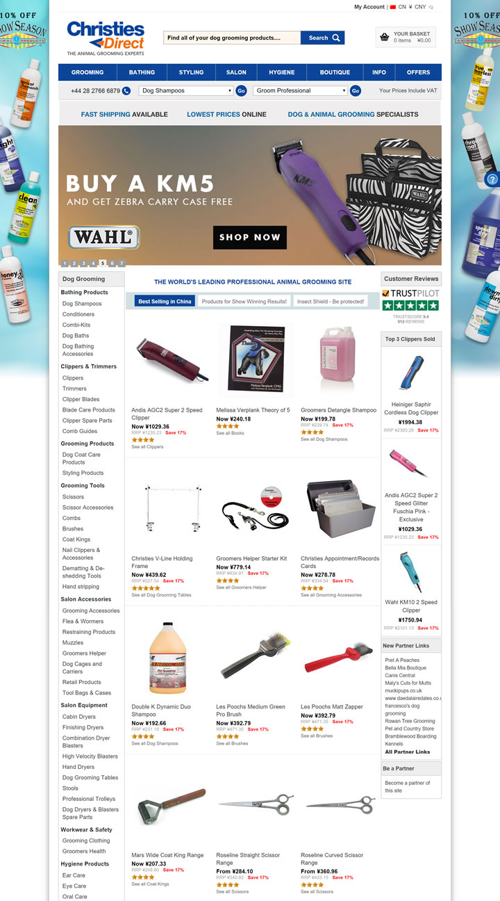 Christies Direct是领先的狗和宠物美容专家,提供剪刀、烘干机、洗发水、狗美容设备等。