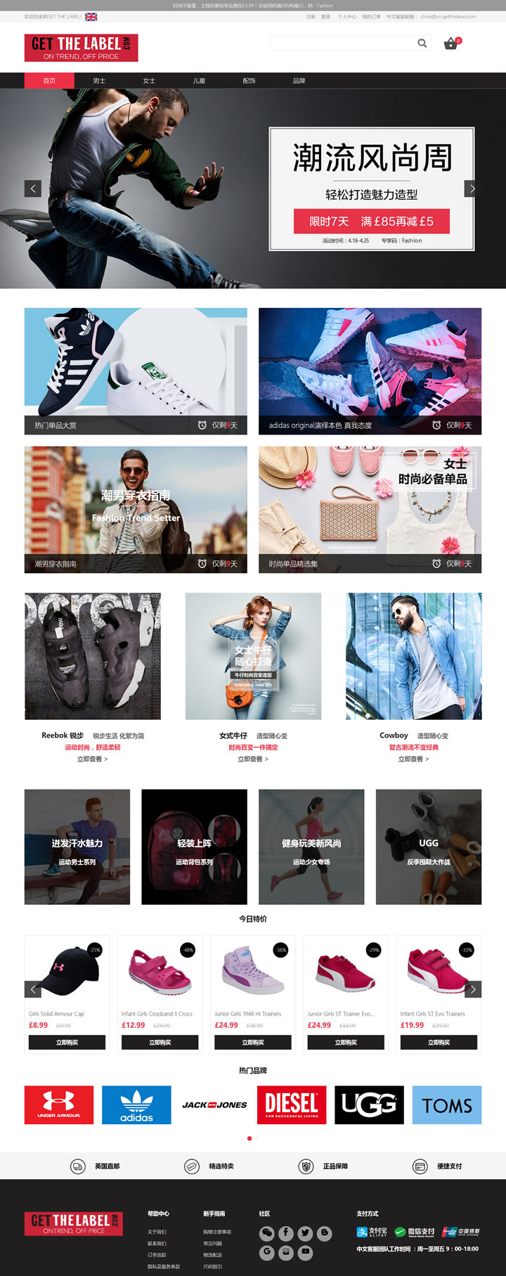 Get The Label目前在线提供超过7000种商品,其中既有运动巨头Adidas、Nike、Puma、Converse、Vans、Fila、Kappa、New Balance、Reebok、Fila、ONITSUKA TIGER、ASICS、UNDER ARMOUR等,亦不乏休闲先锋Diesel、Toms、Lacoste、Hush Puppies、Timberland、Replay、Skechers、UGG、7 FOR ALL MANKIND等品牌,涵盖成年男女与青少年儿童类别,从鞋类、服装到箱包配件一应俱全,让您从头到尾都散发潮流气质。
