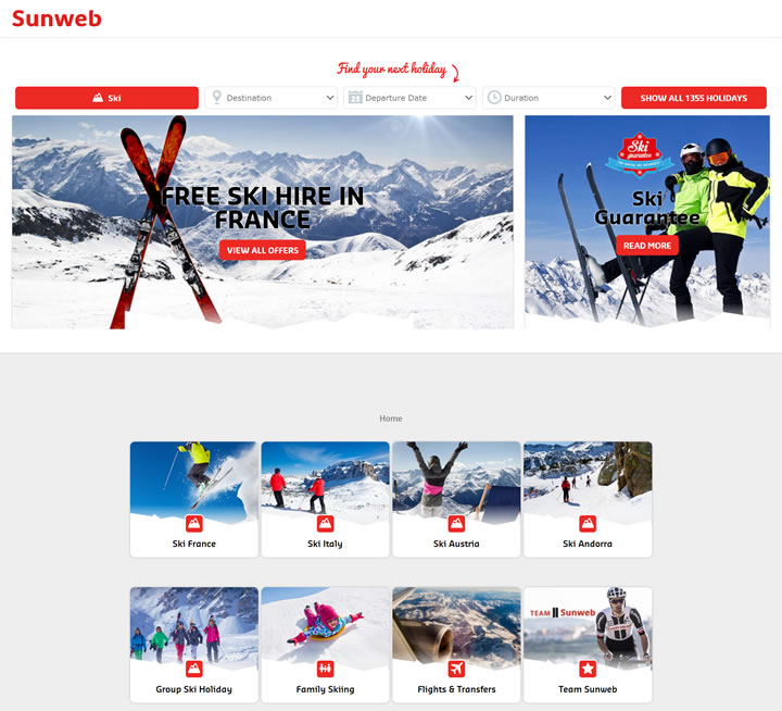 Sunweb Holidays是欧洲最大的滑雪假期供应商之一。法国、奥地利和意大利的廉价滑雪假期。在Sunweb Holidays找到完美的滑雪假期和最佳优惠!