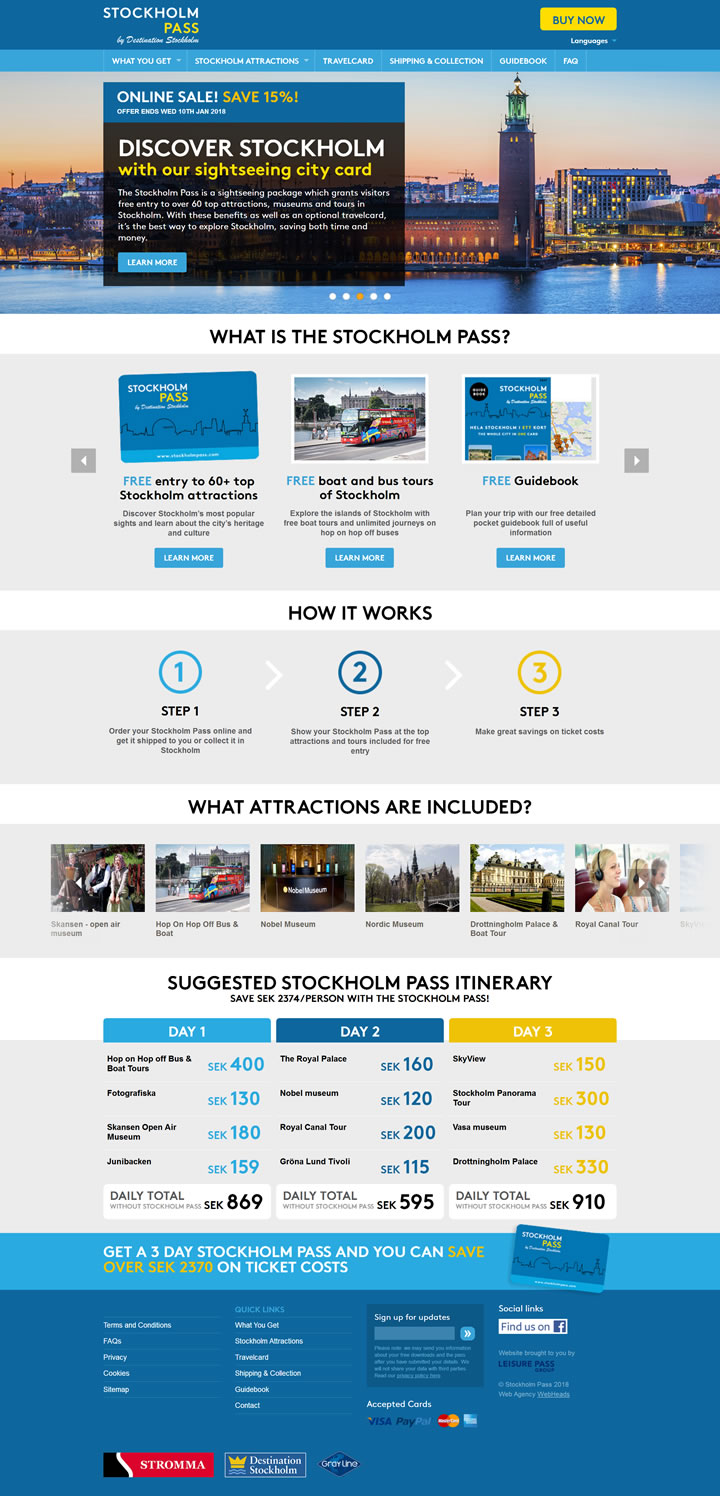 Stockholm Pass是一个观光套餐,可让游客免费进入瑞典斯德哥尔摩60多个旅游景点。这是探索城市,同时节省时间和金钱的最佳方式。