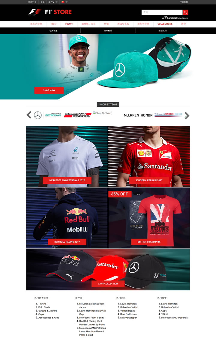 欢迎来到一级方程式赛车官方网上商店,它是惊心动魄的 F1 运动的一站式商店,专门销售最新、最棒的 F1 和大奖赛商品,同时提供种类齐全的正品和经授权队服、帽子、车迷服装及配饰。 F1 网上商店经一级方程式赛车世界锦标赛官方批准,向赛车迷们提供广泛的 F1 产品选择,拥有 F1 爱好者们在激动人心的一级方程式大奖赛 2017 赛季支持他们最喜爱的车队和车手可能需要的一切。 F1 商店本身是一个独具特色的服装和商品中心,汇集了来自运动领域最受尊敬和最著名的设计师的大量精品,并提供经过认证的车队服装系列以庆祝各个车队,例如 Mercedes AMG Petronas、Scuderia Ferrari、Red Bull Racing、Sahara Force India、Williams Martini Racing、McLaren Honda、Scuderia Toro Rosso、Haas F1 Team、Renault、和 Sauber。 除了种类繁多的 F1 服装,例如从车手所用装备的复刻品到 T 恤、夹克、连帽衫、帽子等休闲产品外,F1 网上商店还提供独家 F1 配饰、独创 F1 礼品、正品 F1 汽车配件和动态 F1 艺术品。