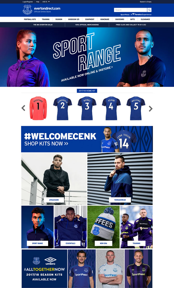 Evertondirect.com是埃弗顿足球俱乐部商品的官方网上商店,购买埃弗顿官方服装、足球装备、个性化产品、家居用品、纪念品等。