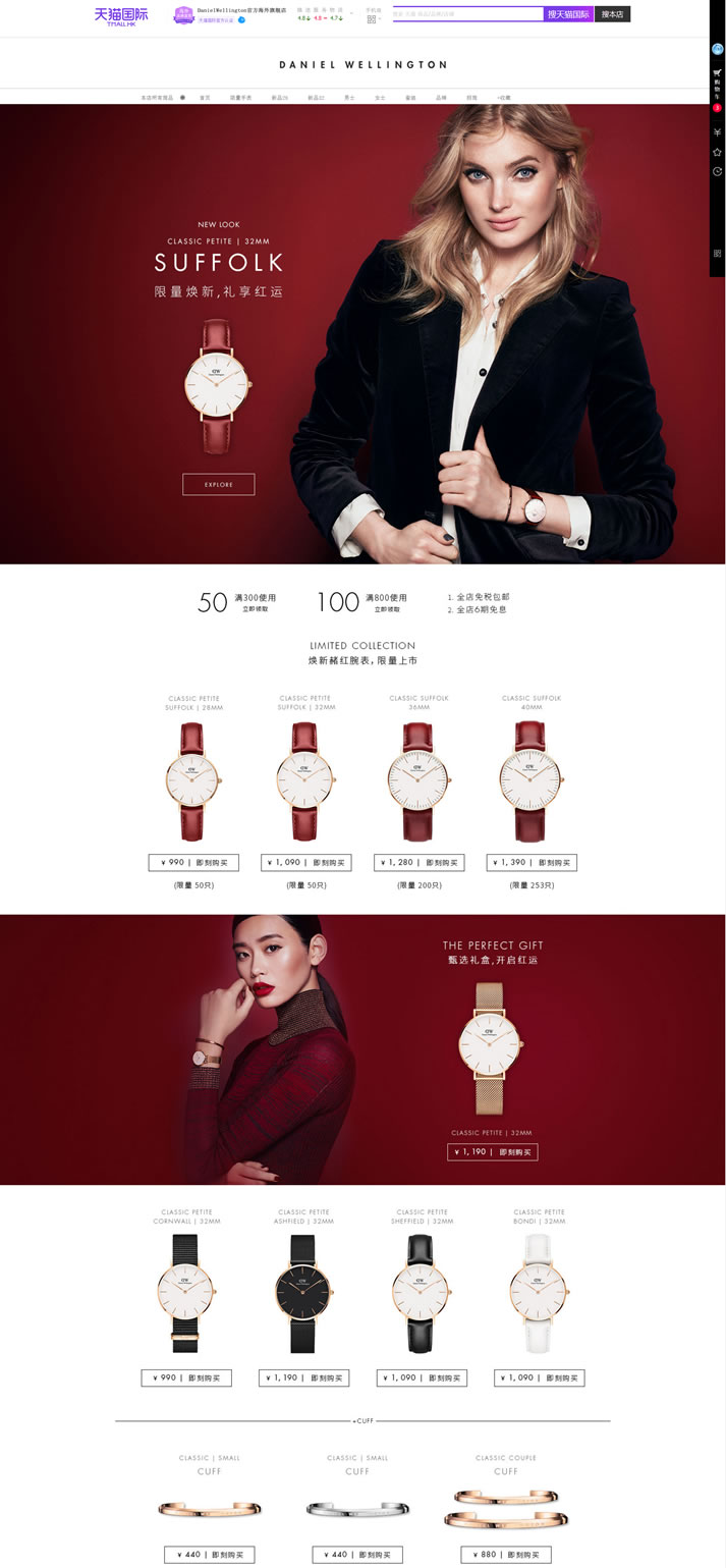Daniel Wellington官方海外旗舰店:https://danielwellington-hk.tmall.hk