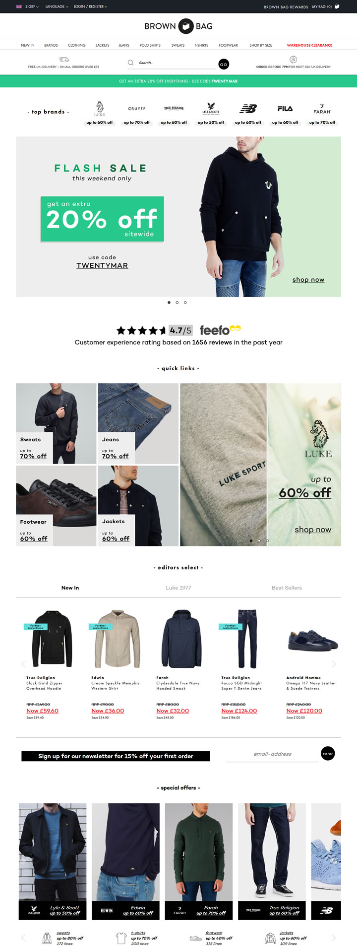 Brown Bag Clothing以折扣价格为您带来最好的设计师男装,超过50个品牌,包括Armani、Boss、Stone Island、Lacoste和Fred Perry等。