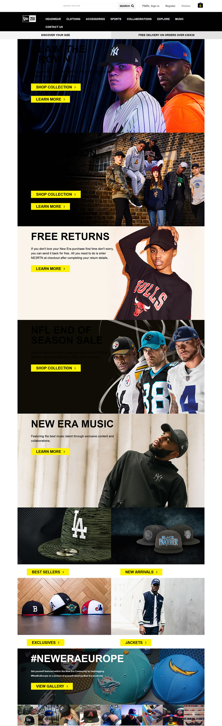 New Era为美国知名的制帽品牌,除了生产美国职篮(NBA)、美式职业足球(NFL)的球帽之外,最风行的便是美国职棒大联盟(MLB)的帽子系列。随着许多嘻哈明星、影视名人佩戴New Era帽子,New Era帽子跨出运动范畴,受到喜欢街头文化及运动休闲人士的欢迎,成为最新的时尚穿著指标。