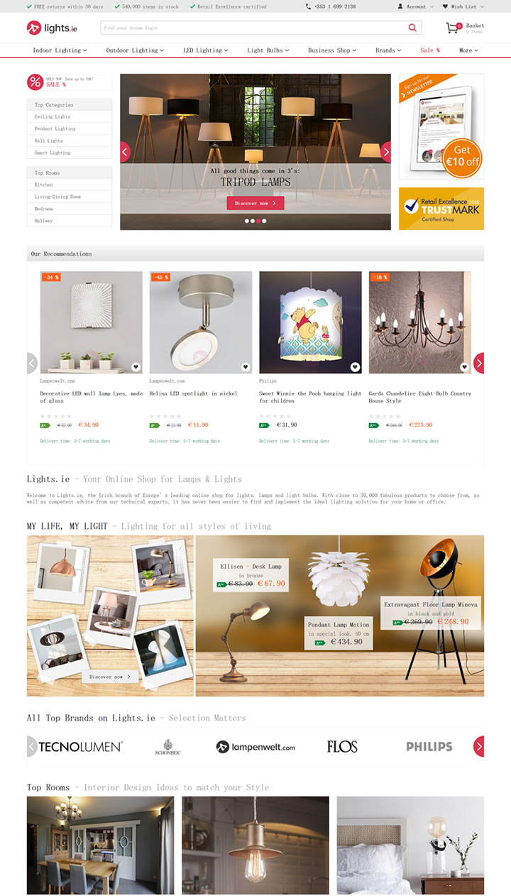 欧洲领先的灯、灯具和灯泡网上商店爱尔兰分公司,我们拥有近3万种产品可供选择,为您的家庭或办公室寻找和实施理想的照明解决方案。