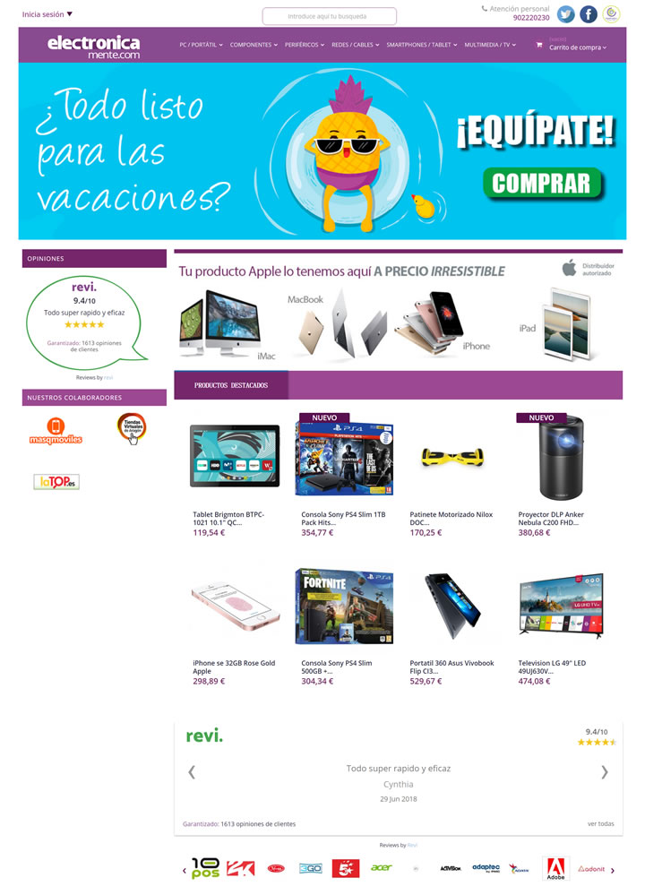 西班牙电子产品购物网站,购买手机、笔记本电脑、平板电脑、电脑。 品牌有:Apple、Samsung、BQ、LG、Acer、Asus、Toshiba。
