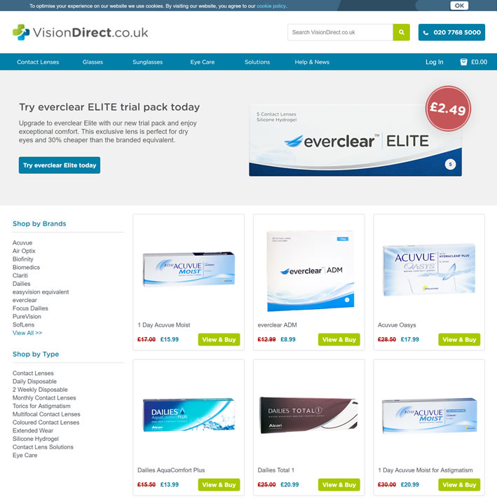 自1998年以来,VisionDirect.co.uk是第一家通过直接向客户销售来打破对隐形眼镜垄断的公司。与大街上的眼镜商相比,我们的价格要便宜45%。我们销售所有主要品牌,如Acuvue、Focus Dailies、Proclear、Biofinity、Soflens、Freshlook, 直接从英国和欧洲供应商购买。