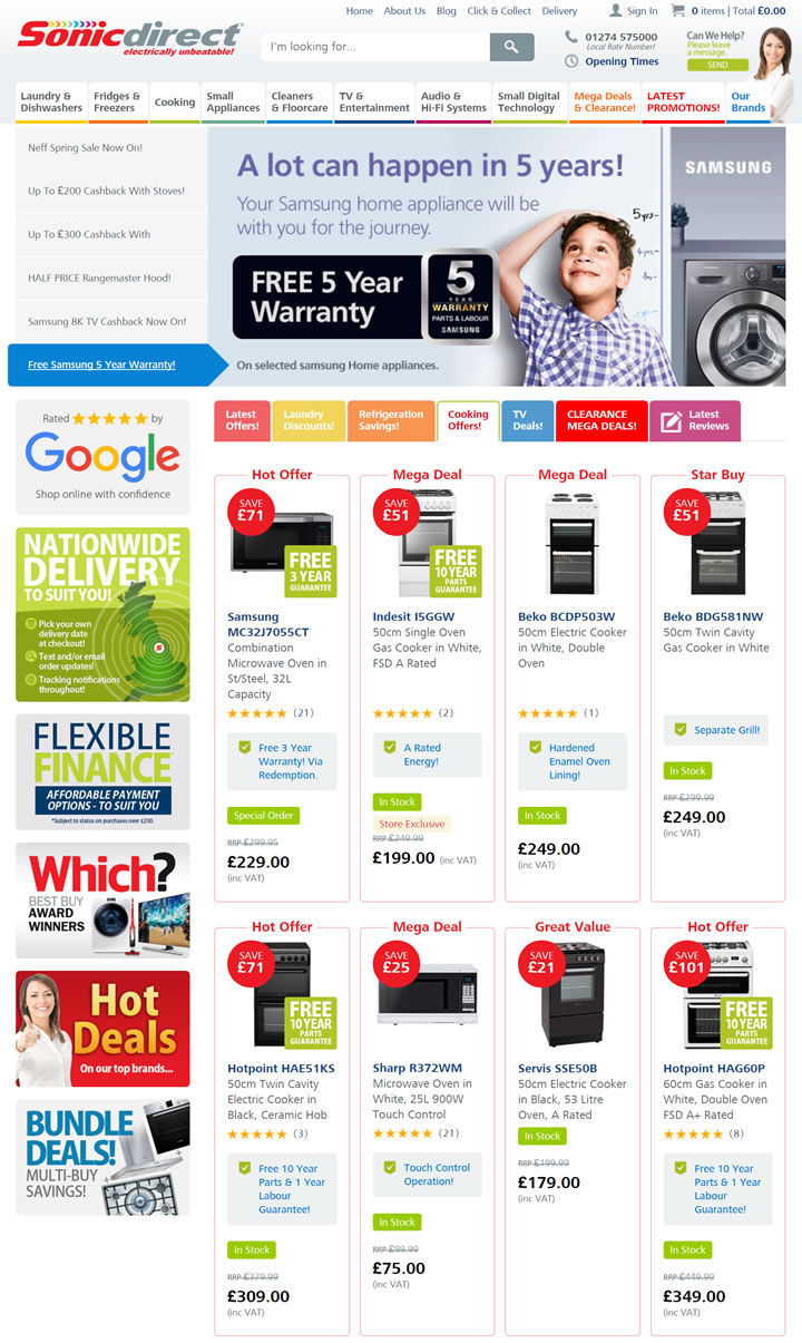 Sonic Direct:最新的电视机、洗衣机、冰箱冰柜、洗碗机、炊具和更多,英国免费送货。