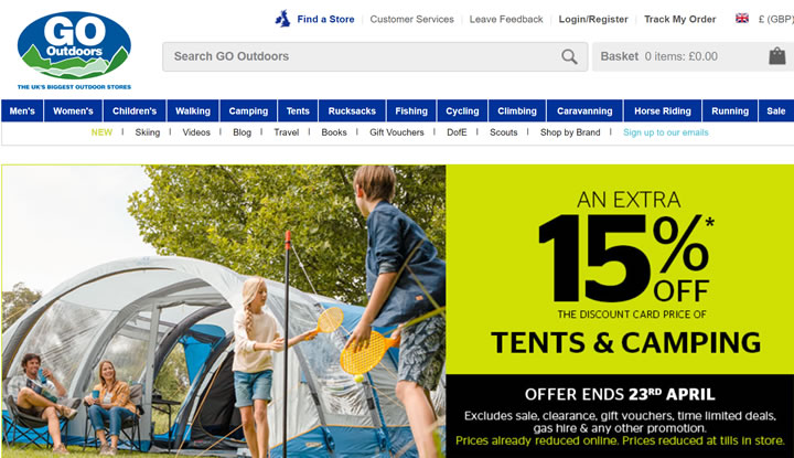 Go Outdoors是英国最大的户外商店。大范围,顶级品牌和折扣价格。
