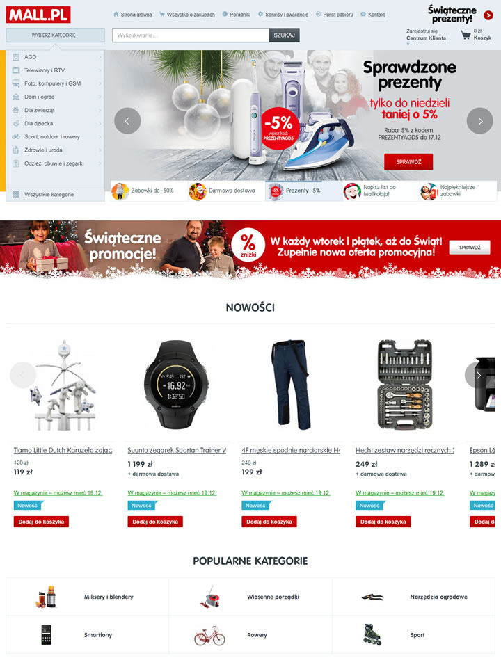 波兰购物网站,提供超过5万种产品,包括家用电器、电视机、摄影、运动户外、服装鞋类、手表、玩具和宠物食品等。