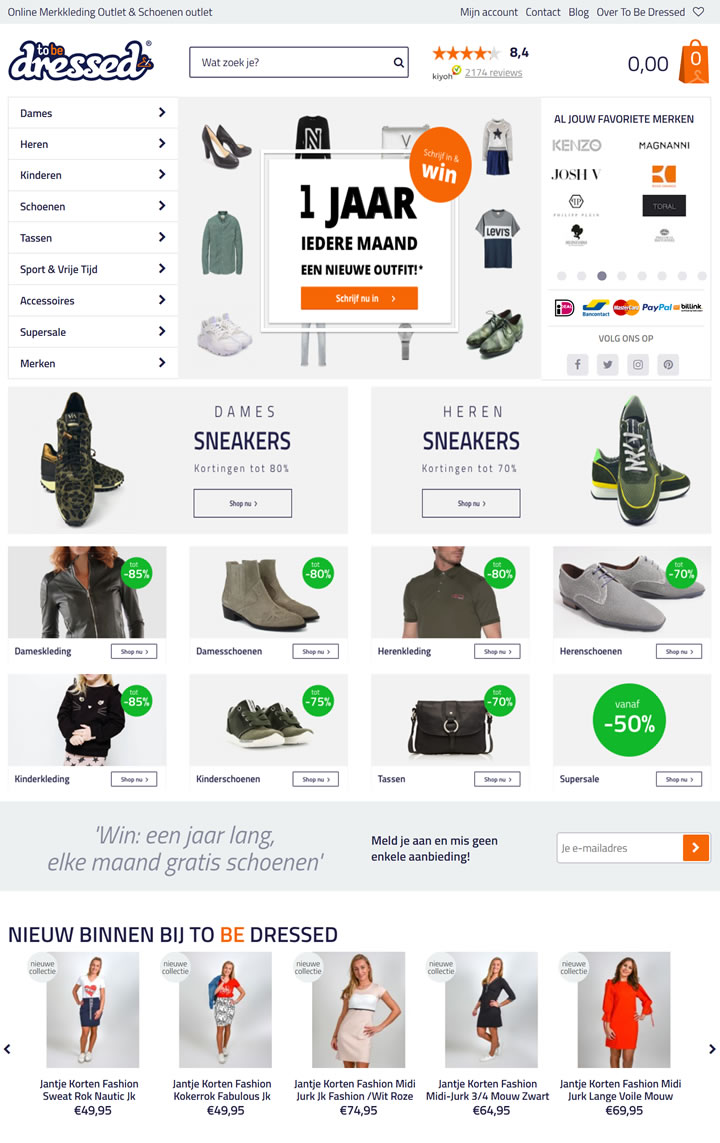 To Be Dressed是荷兰的时尚市场。我们为您提供最美丽品牌的最大在线鞋类和名牌服装系列。例如,To Beressed将来自荷兰最大的在线鞋店和名牌服装店的数百家供应商的所有销售服装和鞋子捆绑在一起。