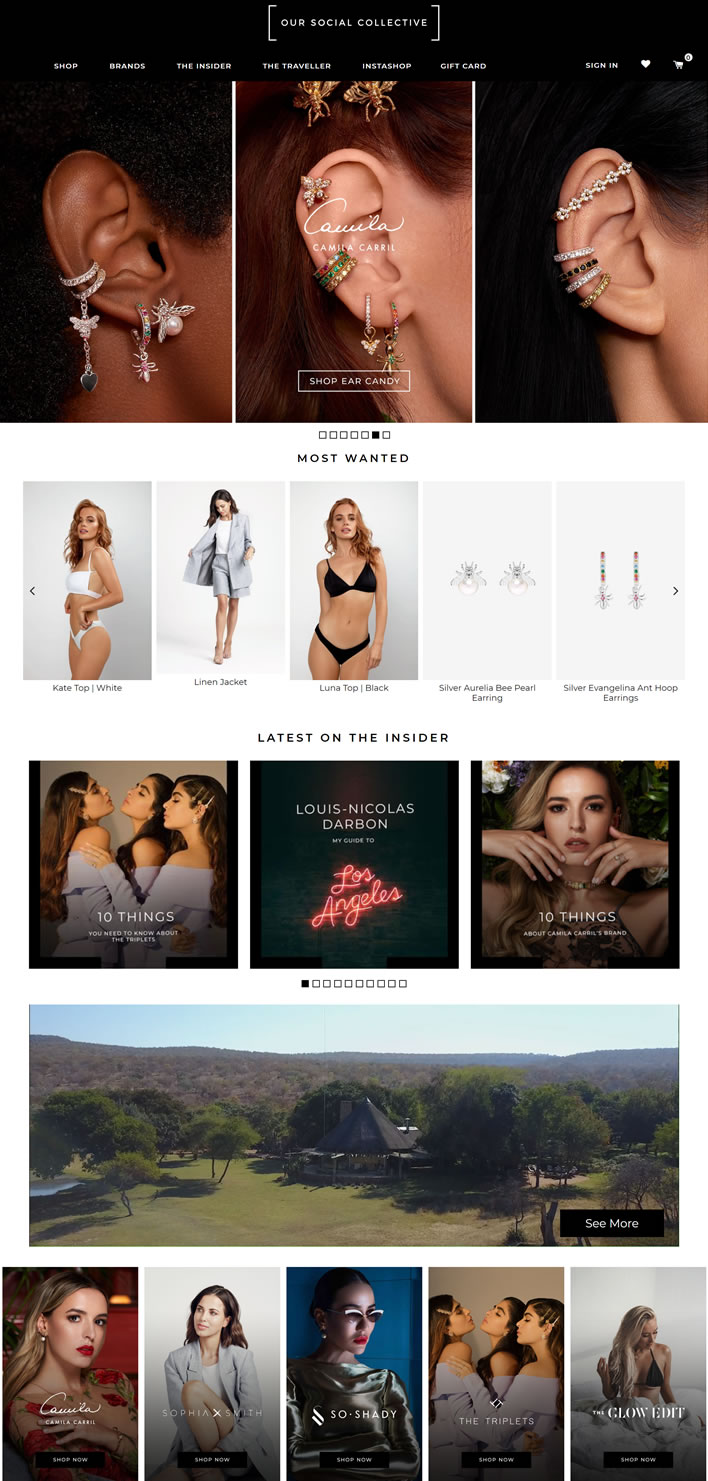 有影响力的品牌之家,品牌有:Camila Carril、Sophia Smith、So Shady、The Triplets、The Glow Edit、Louis-Nicolas Darbon等,涵盖珠宝、服装、眼镜、泳装等。