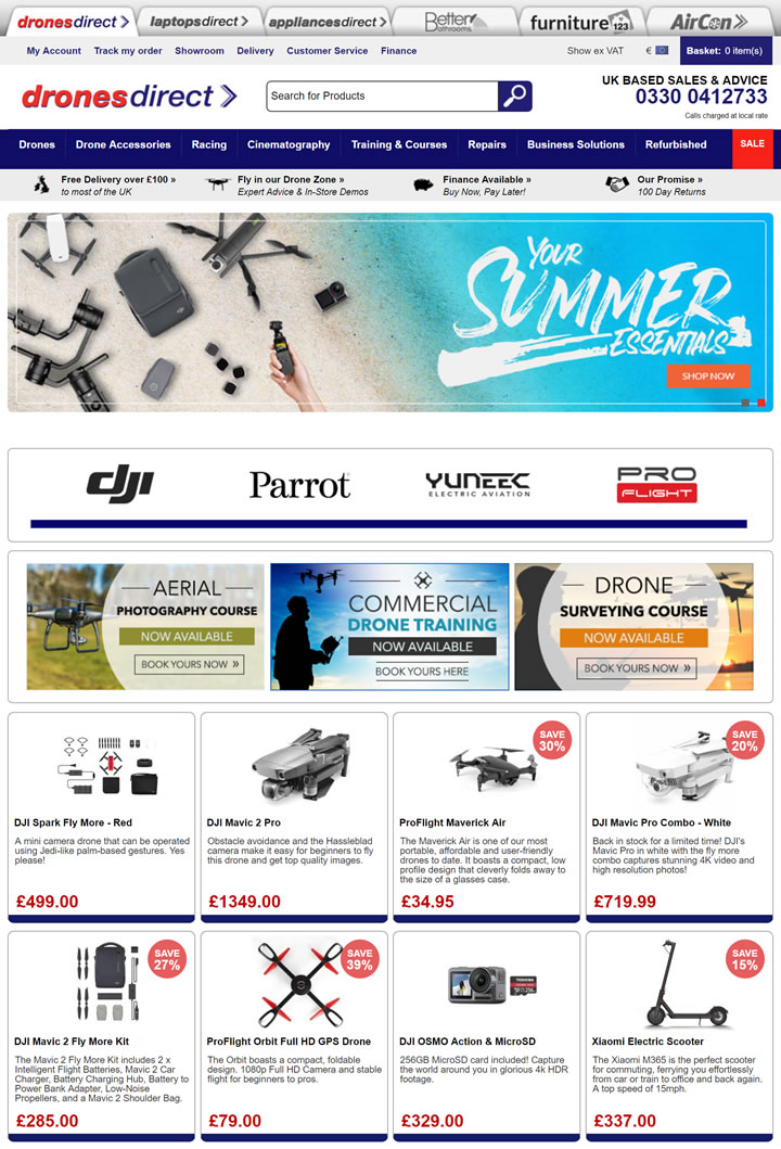 在线订购无人机或在店内购买。我们提供金融和次日送货服务,以及约克郡无人机展厅的现场无人机演示。