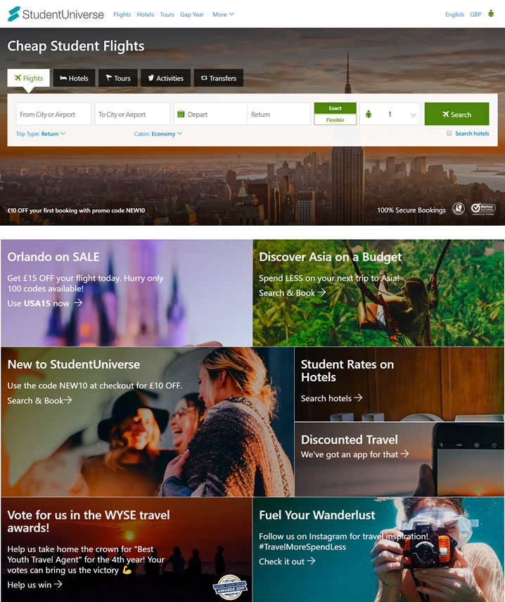 StudentUniverse英国:https://www.studentuniverse.co.uk