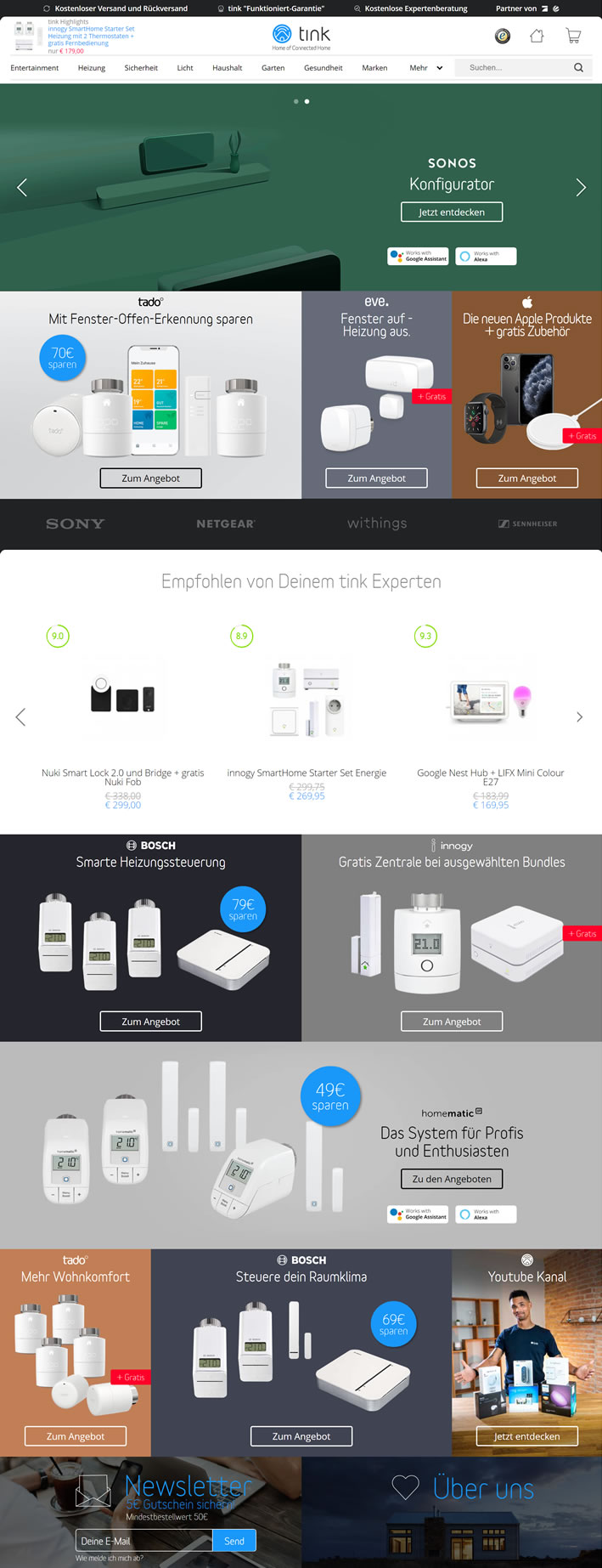 tink.at是第一个专门研究互联家居产品的比较和销售平台。客户可以在tink.at上找到有关使家居更智能的所有产品的详细且独立的专家评论。该平台为每个人的家提供正确的解决方案,尤其是在安全性、供暖效率和娱乐领域。
