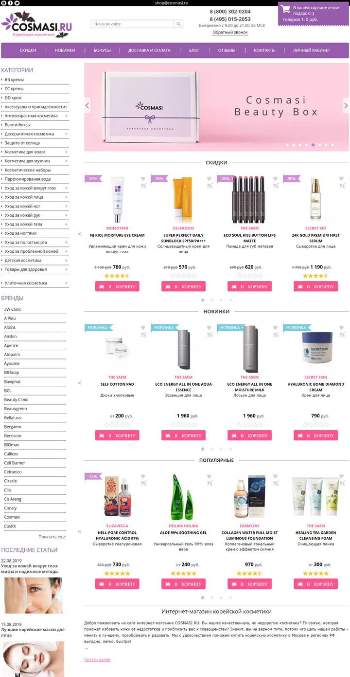 俄罗斯韩国化妆品网上商店:Cosmasi ru
