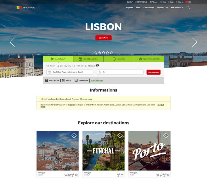 葡萄牙航空,TAP Portugal(简称TAP),是葡萄牙国有航空公司,是该国领先的航空公司,以里斯本为该公司基地,葡萄牙航空的主要业务是经营欧洲、非洲、美洲的业务。