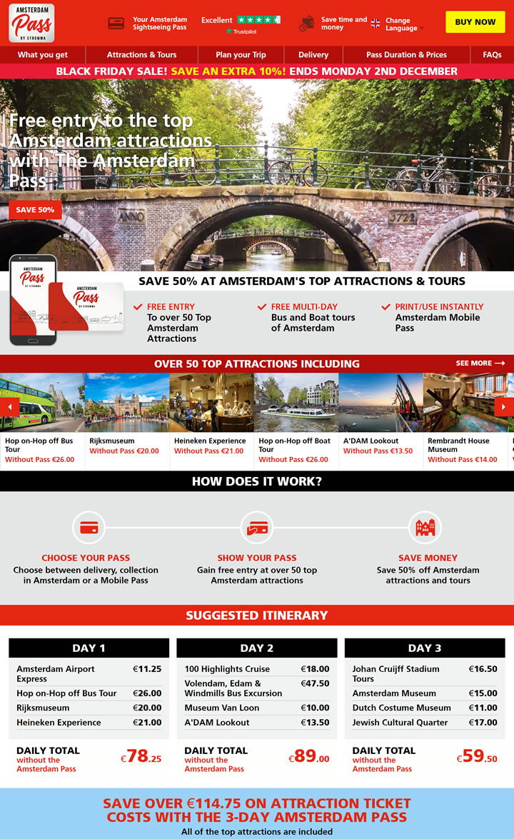 阿姆斯特丹城市卡允许带你进入梵谷博物馆、NEMO科学博物馆、阿姆斯特丹冬宫等,同时可以无限制使用GVB公共交通工具,甚至可以乘坐运河游船,是你游赏阿姆斯特丹水岸风光的绝佳机会。使用阿姆斯特丹城市卡,就可以享受多项惊人折扣、特别优惠、赠品以及详细的城市地图,样你不会迷失在「北方威尼斯」中!