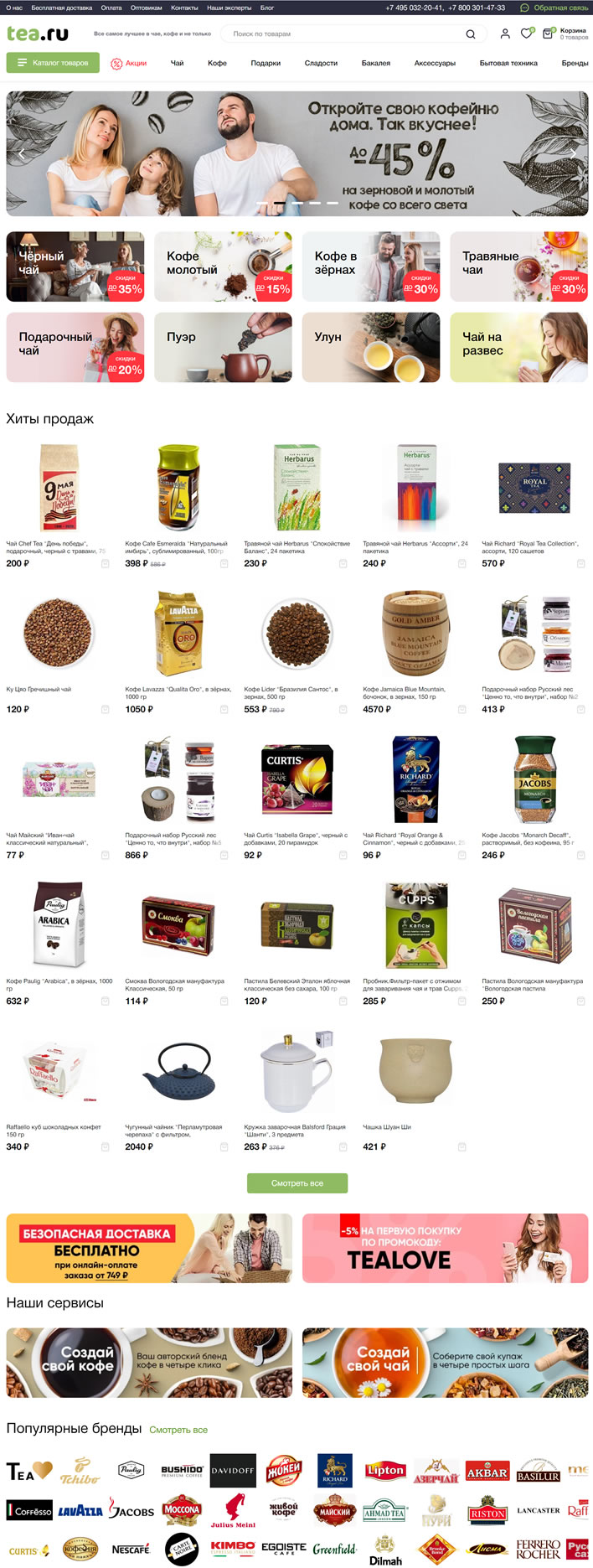 俄罗斯茶、咖啡和其他健康天然产品的在线商店。在我们的网站上,您可以购买知名品牌的茶和咖啡以及稀有品种。我们直接与制造商合作,而无需中介,请仔细检查每个目录项。Tea.ru是莫斯科最大的茶叶专卖店之一,提供各种各样的咖啡、甜点和礼物。我们的产品目录有5000项。喝茶,喝咖啡,尽享美好,为自己和亲人创造幸福时刻。