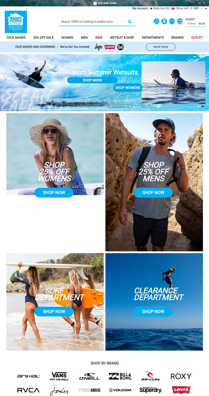 在Ann’s Cottage(英国最大和最具标志性的冲浪商店之一)中,从我们广泛的品牌中查看我们精选的冲浪服装和设备。