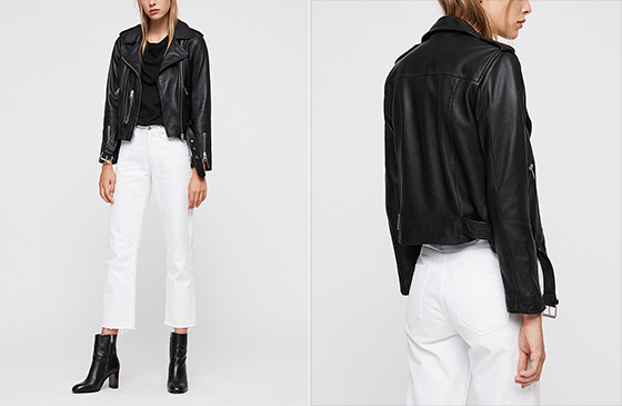 AllSaints家的机车外套也是不少朋克少女的爱!买皮衣当然第一是要选皮质咯,它家软软的皮质有口皆碑,有好的皮质,皮衣才会散发出高级的光泽度还有质感。委员身边不少童鞋是看到实物之后才被圈粉的。不过据说它家牌子的皮衣尺码偏小,建议大家下单时稍稍选大一号的喽!