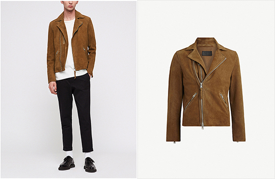 AllSaints家的男款麂皮外套看上去也是无比的顺眼啊,百搭的驼色不像黑色那么沉闷,带点绒绒感觉的皮质也削弱了机车外套那种凌厉的距离感,暖暖的男生会选择的皮衣应该就是这种了吧。