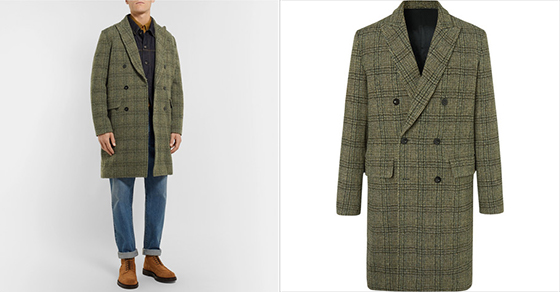 当然还有一大票男生还是比较倾向于不会出错的格子大衣的。这不委员就给你找着一件,这件暗绿色的威尔斯亲王格子料(Prince of Wales check)大衣制自意大利,合体的裁剪让肩部和衣襟连接处十分贴合身体,因此穿上去会很挺拔又没有紧绷的感觉,舒适的穿着感才能给人一种从容之感,优雅的英伦腔调也就呼之欲出咯!