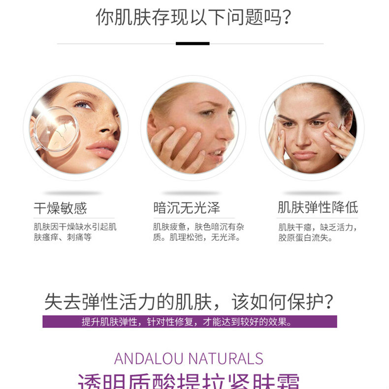 - 中文名称 :Andalou Naturals 逆龄系列 玻尿酸提拉紧致面霜 50ml 淡化细纹保湿抗皱