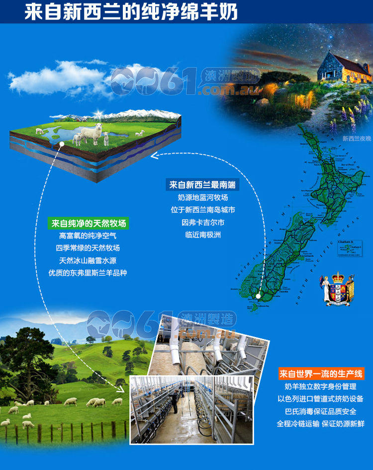 其实,全球知名的奶源地虽然不是多不胜数,但像澳洲、新西兰、荷兰、德国这些还是相当有含金量的;优质的奶源自然是创造优质乳品的必要条件,羊奶粉尤其如此。羊奶粉因为受到了产量的影响,无法做到和牛奶一样普及,也因此更加珍贵。
